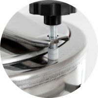 Автоклав Малинка идеален для приготовления тушенки, каши, салатов, варенья, компотов, овощного ассорти, маринования грибов и прочего. Особая технология крепления обеспечивает безопасную и точную работу: овальная крышка слегка фиксируется двумя вентилями снаружи, а далее – поддерживается давлением изнутри. Все модели оснащены клапаном аварийного сброса давления, что позволяет избежать превышения допустимых показателей.