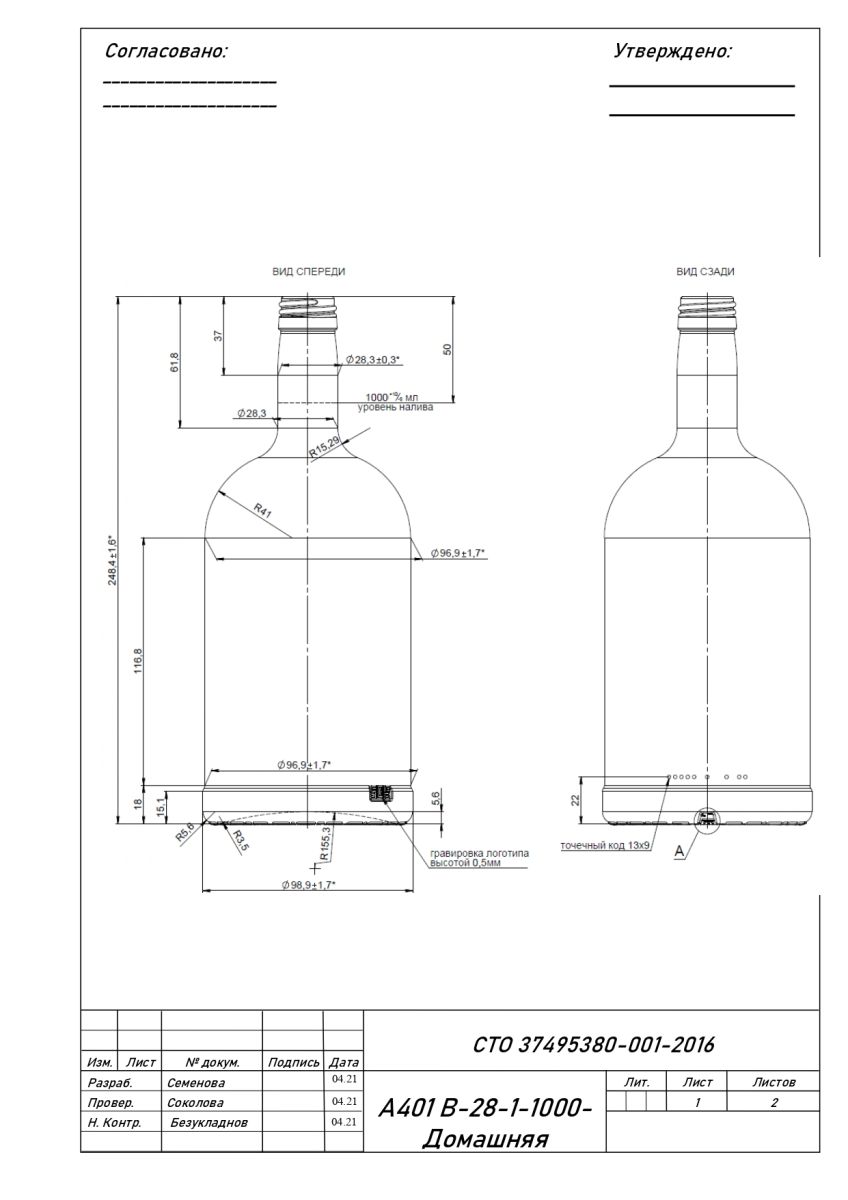 Бутылка 1000 мл В-28 ДОМАШНЯЯ 1/12