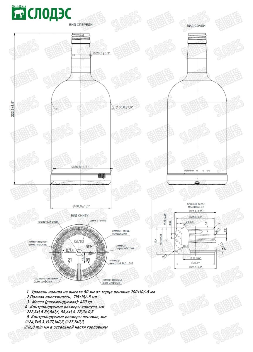 Бутылка 700 мл В-28 ДОМАШНЯЯ 1/12