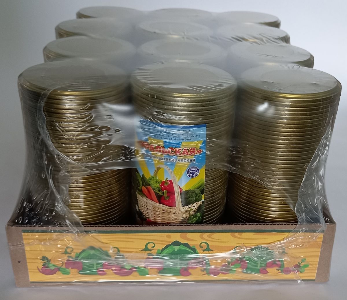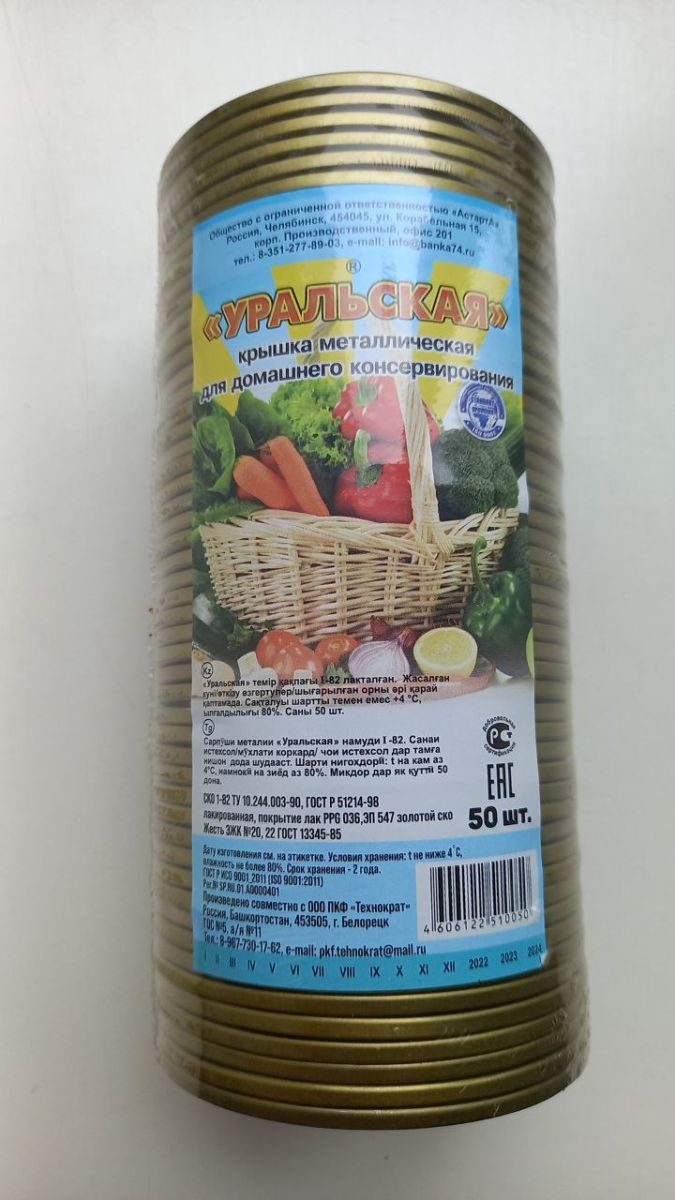 Крышки изготовлены из пищевой жести толщиной 0,18 - 0,20 мм. С обеих сторон крышка покрыта золотистым лаком, предназначенным для контакта с пищевыми продуктами. Лак стойкий не только к консервным средам, но и к механическим повреждениям. Уплотнительное каучуковое кольцо не имеет неприятного запаха и не выделяет токсины. Производитель кольца гарантирует срок хранения готовой крышки до пяти (!) лет. Изготовитель крышек (штамповка) - г. Белорецк. Сборка и упаковка - г.Челябинск. При заказе крупным оптом цена гораздо интереснее!