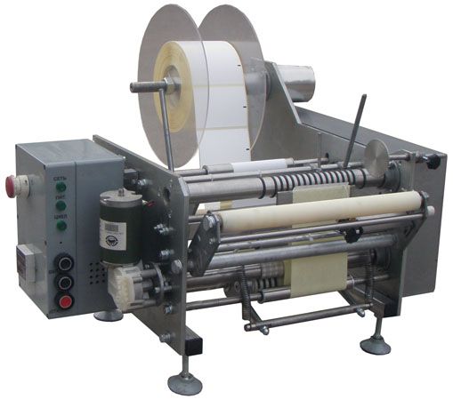 Машина предназначена для нанесения самоклеющихся этикеток на банки, бутылки и другую тару цилиндрической формы. Этикетировочный автомат состоит из выполненных в едином конструктиве электромеханической этикетировочной головки, механизма вращения тары в виде горизонтально расположенных вращающихся валов, приводящего мотор-редуктора и блока управления. Аппликатор самоклеющихся этикеток запускается автоматически после помещения тары на механизм вращения. Легко перестраивается под размеры этикетируемой тары и под размеры этикеток.